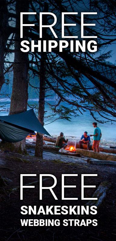Always test your gear close to home before you start out on your trip, especially if you're setting out for some cold weather camping. You need to know how every piece of gear will contribute to your comfort. Everyone has a different metabolism (in the winter, some folks sleep with the windows wide open, some with the heat turned all the way up) so everyone needs to find the right combination of sleeping bag and insulation. It's important to use a pad wide enough to protect the back of your arms such as our DoubleBubble reflector pad, our SuperShelter 4 Season System or a jumbo car windshield reflector pad trimmed down to size. Closed cell foam pads are usually too bulky and usually not wide enough to protect the back of your arms. The hammock fly can be tied down close to the hammock like a tent but leave some space for air circulation to carry away the condensation. Even in the winter, the mosquito netting serves a useful purpose. The fine weave of the mosquito mesh blocks out about 90% of the wind and provides a calm space inside the hammock, even when the fly is not fastened down as low as possible.